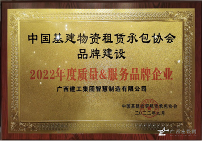 广西建工集团智慧制造有限公司荣获“2022年度质量服务品牌企业”,公司董事长、党总支书记李日红荣获“2022 年全国基建物资租赁承包行业杰出创新人才”称号。